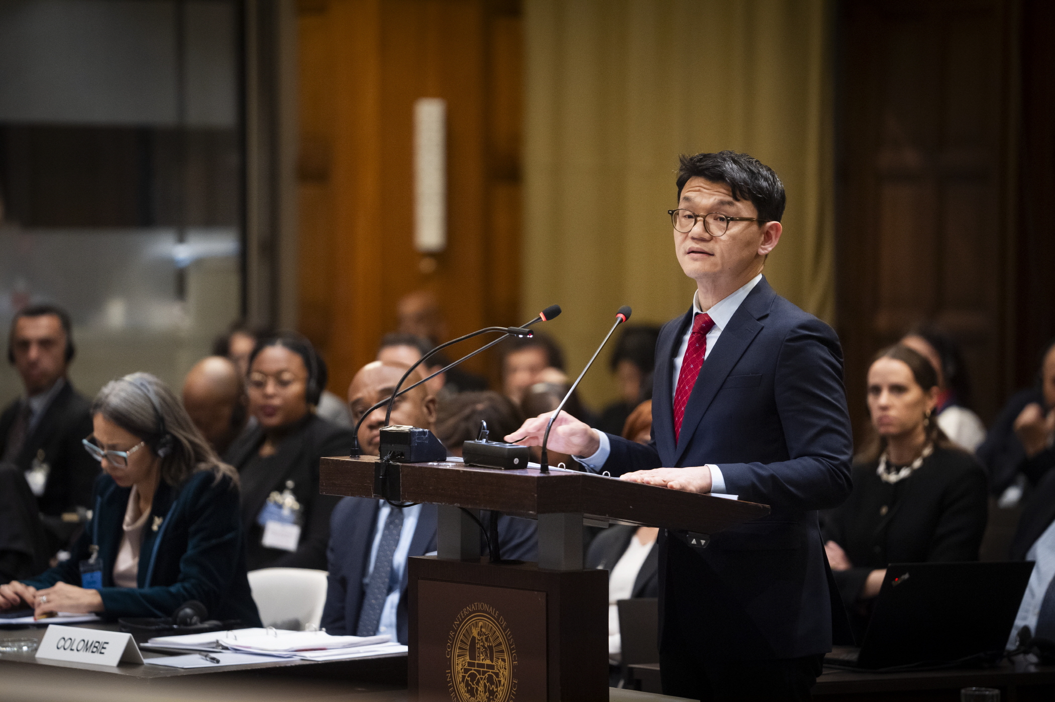 우리나라는 12. 3.(화) 오후 황준식 국제법률국장과 이근관 서울대학교 법학전문대학원 교수가 참여해 구두발언을 진행하였습니다. 이는 우리나라 최초의 ICJ 권고적 의견 구두절차 참여이기도 합니다.